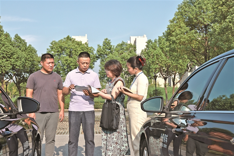 安徽省郎溪县纪检监察干部在机关单位实地核对派车清单,检查公车日常使用登记、定点停放等情况。 焦云莉 摄