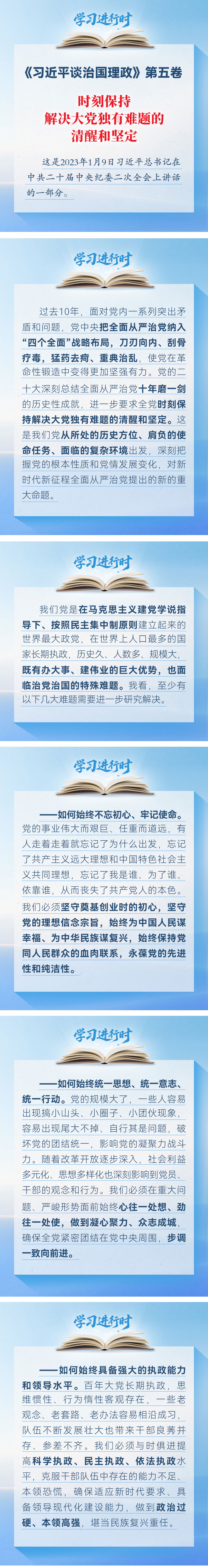 学习进行时丨时刻保持解决大党独有难题的清醒和坚定