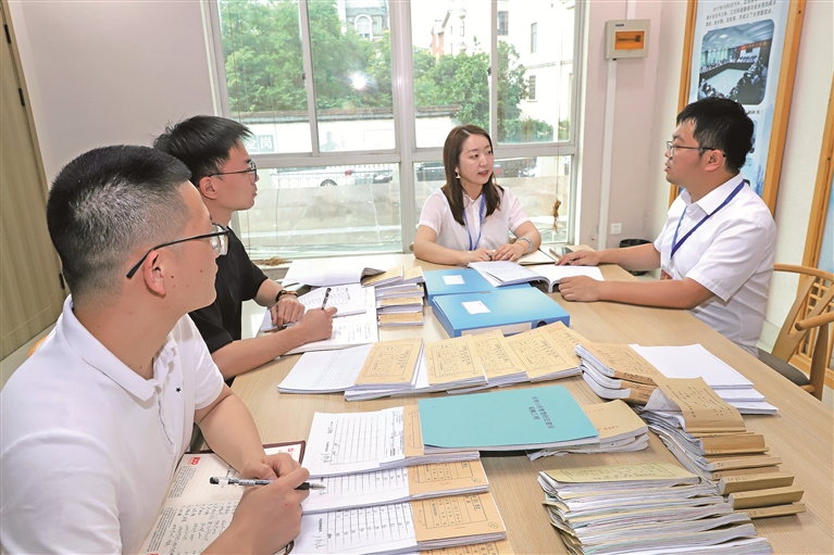 10月13日,浙江省东阳市纪检监察干部在该市江北街道办事处就党员干部责任落实等方面情况开展监督。包筱玲 摄