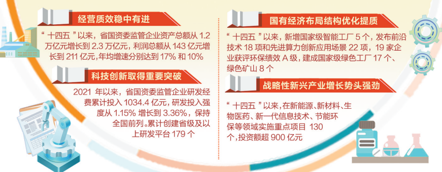 “十四五”时期,省国资委有序推进29家企业战略性重组和专业化整合,涉及资产5274亿元,推动国有经济布局结构不断优化。