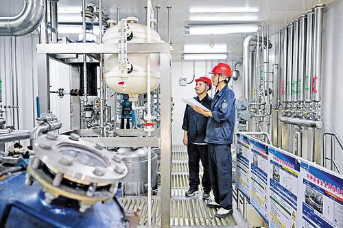 11月1日,京津冀·沧州生物医药产业园,北京斯利安药业有限公司沧州分公司员工正在化学药品原料药制造生产线上忙碌。 记者 张 昊摄