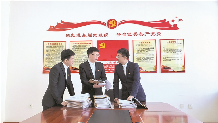 图为黑龙江省齐齐哈尔市富拉尔基区纪委监委办案人员结合查办的案件,讨论新型腐败和隐性腐败取证问题。 崔明太 摄