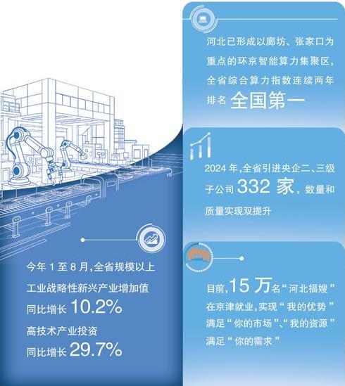 在京津冀协同发展“一盘棋”中,河北找准自身定位,全力承接京津产业转移,在对接京津、服务京津中加快发展自己。2024年,全省引进央企二、三级子公司332家,数量和质量实现双提升。