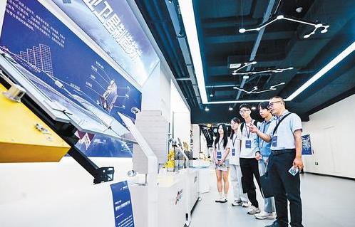 6月10日,雄安未来之城场景汇科创园二楼体验中心,参赛院校师生在空天信息展区观摩学习。本报记者 李东宇摄