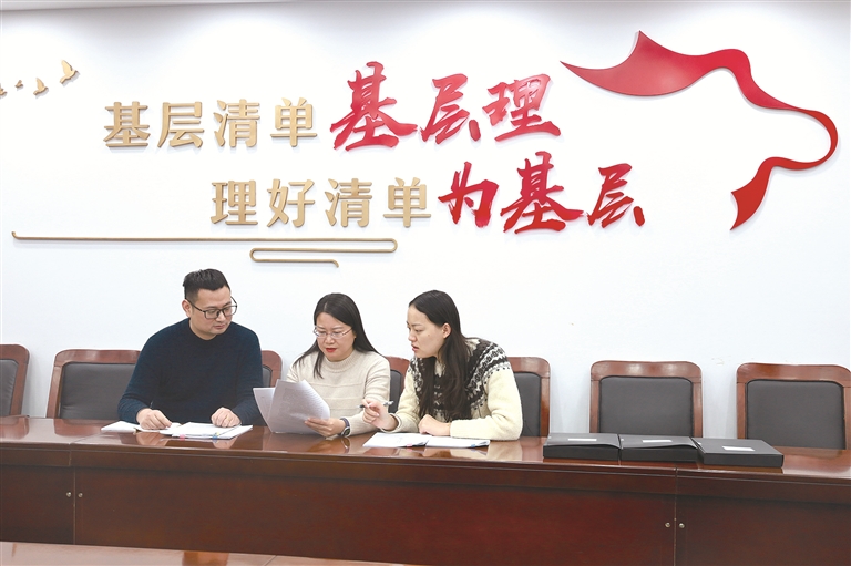 全面建立乡镇(街道)履职事项清单是加强基层治理体系和治理能力现代化建设的基础性制度安排,是为基层减负、破解基层治理“小马拉大车”突出问题的重要举措。目前,全面建立乡镇(街道)履职事项清单工作取得明显成效。图为江苏省张家港市南丰镇工作人员研究落实权责事项。 罗燕 摄