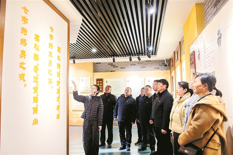 河南省焦作市武陟县纪委监委把家风建设作为厚植廉洁文化的有力抓手,以家训传廉、家庭助廉、阵地倡廉等方式,教育引导党员干部涵养清廉家风,筑牢廉洁防线。图为近日,该县詹店镇组织党员干部和家属在何瑭家风家训教育基地参观学习。 陈啸虎 摄
