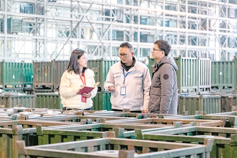 安徽省广德市纪委监委坚持围绕中心、服务大局,将护航专精特新企业发展作为监督检查的重点,聚焦政策落地、资金监管、政务服务等关键领域,靶向监督破解发展堵点,激活企业创新创造活力。图为日前,该市纪委监委工作人员前往某制造企业了解惠企政策落实情况。郑展鹏 摄