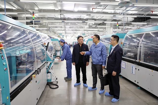 江苏省海安市纪委监委聚焦新质生产力发展强化监督,紧盯政策落实、涉企服务、行政审批等关键环节,持续治理突出问题,为市域新质生产力发展清障护航。图为近日,该市纪检监察干部在当地某电子科技公司了解相关情况。 徐淏 摄
