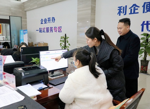 河南省周口市鹿邑县纪委监委将“高效办成一件事”作为监督切入点,深入整治群众身边不正之风和腐败问题。图为近日,该县纪检监察干部在县政务服务大厅企业开办窗口了解有关情况。李乐乐 摄