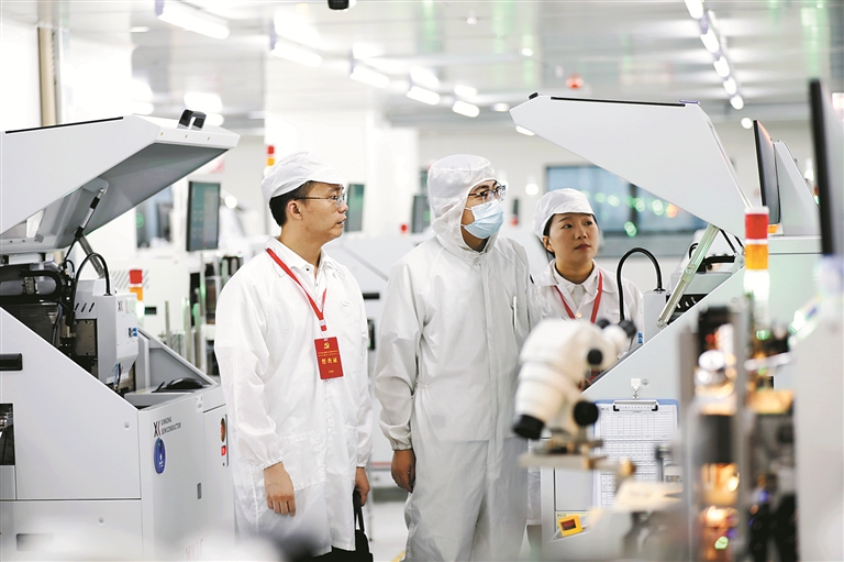 四川省南充市顺庆区纪委监委持续推进政治监督具体化、精准化、常态化,聚焦区域重大战略、重要政策、重点项目等跟进监督,以有力监督保障各项决策部署落地落实。图为该区纪委监委干部来到某智能制造基地,围绕政策落地、执法监管、干部作风等方面开展监督调研。 黎涛 摄