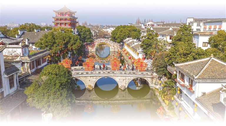 安徽省肥西县三河古镇被装点一新,年味浓厚、游人如织。图片来源:视觉中国