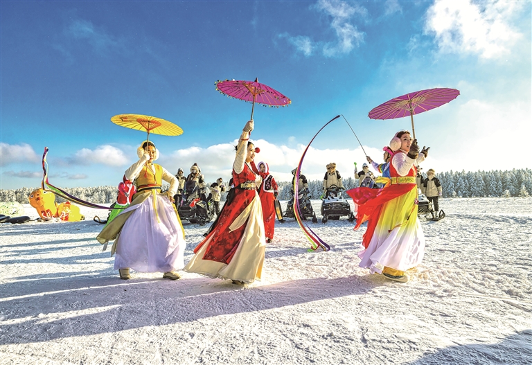 在吉林省延边朝鲜族自治州,能歌善舞的朝鲜族群众穿上节日盛装,在长鼓、洞箫、唢呐等民族器乐声中载歌载舞。刘在学 摄