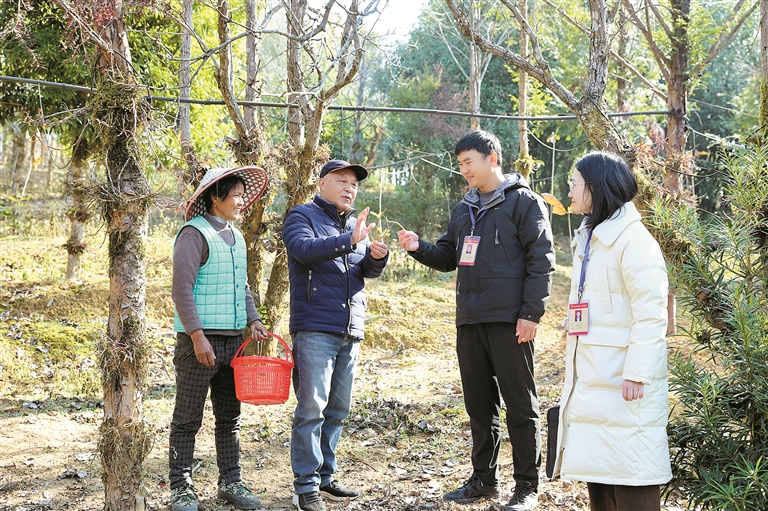 重庆市璧山区纪委监委聚焦乡村振兴政策落实、项目建设、干部作风等内容开展监督检查,组织纪检监察干部深入一线,围绕“科技赋能农业、艺术点亮乡村、融合激活产业”等重点,持续推进美丽乡村建设。图为近日,该区纪检监察干部在七塘镇将军村了解柑橘产业相关情况。佘林川 摄