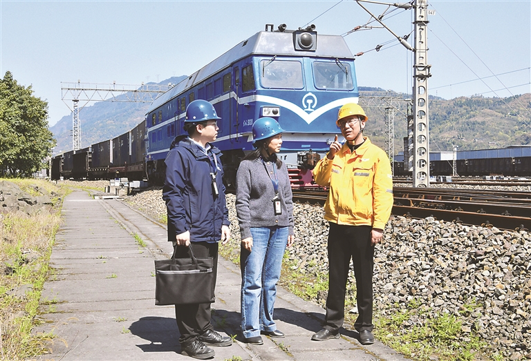 重庆市綦江区纪委监委自觉树立和践行正确政绩观,将政治监督贯穿推动高质量发展全过程,组织力量深入项目一线,以精准有力监督保障重大决策部署落地落实。图为近日,该区纪检监察干部在綦江北站了解货运班列开行、物流枢纽建设等情况。杨莹 摄