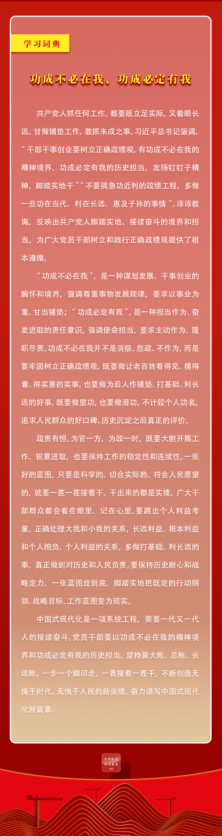 学习词典·树立和践行正确政绩观丨功成不必在我、功成必定有我