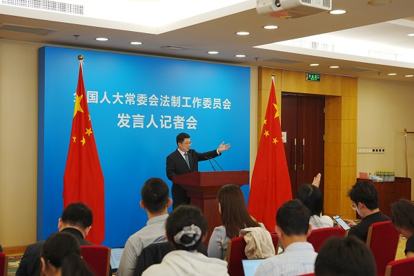 4月24日,全国人大常委会法制工作委员会举行发言人记者会。图为记者会现场。中央纪委国家监委网站 瞿芃 摄