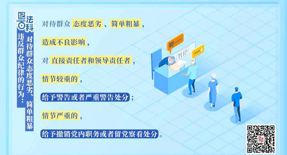 《中国共产党纪律处分条例》第一百二十六条规定,对待群众态度恶劣、简单粗暴,造成不良影响,对直接责任者和领导责任者,情节较重的,给予警告或者严重警告处分;情节严重的,给予撤销党内职务或者留党察看处分。