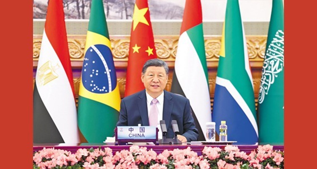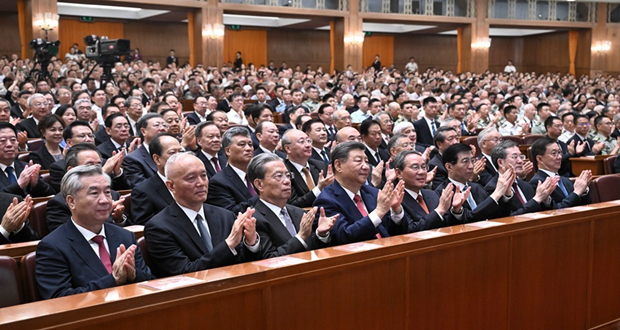 中国紧紧把握历史大势和发展潮流,发出坚定不移走和平发展道路、推动构建人类命运共同体的时代强音,为变乱交织的世界注入宝贵稳定性、确定性,为人类文明进步作出新的贡献。